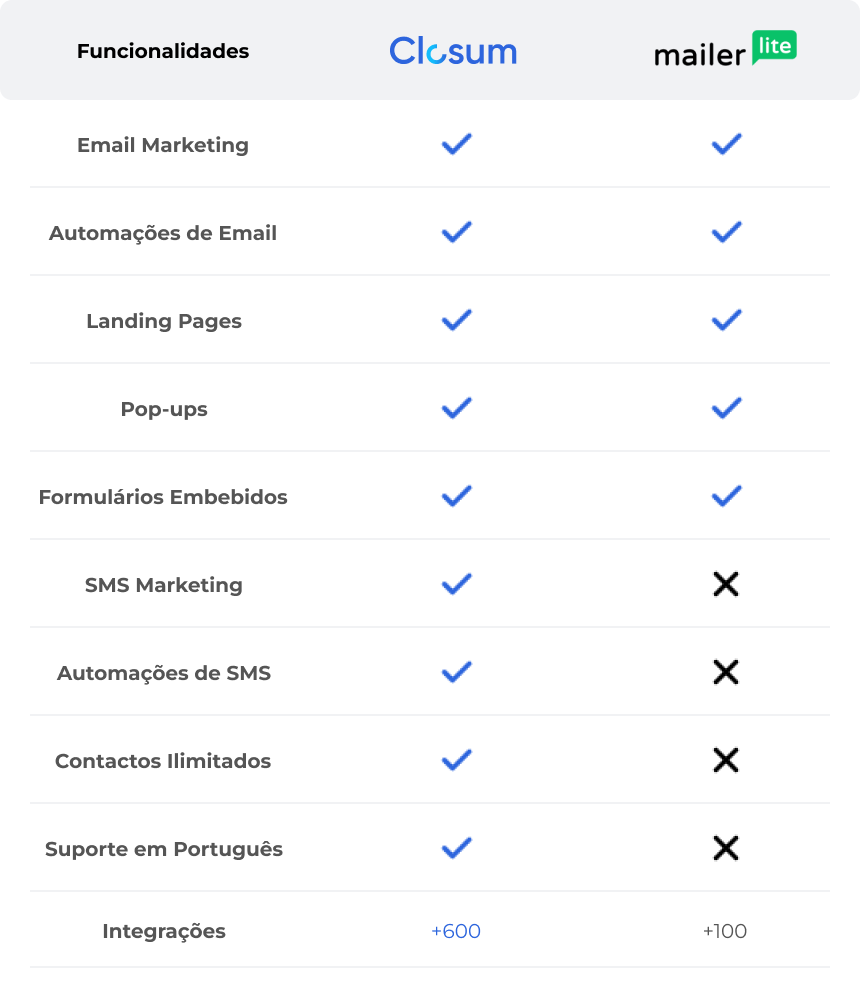 Saiba as vantagens em migrar do Mailerlite para o Closum.